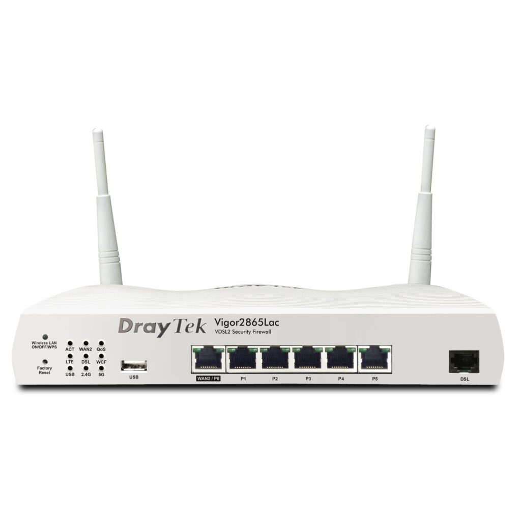 DrayTek V2865LAX-5G-K Vigor 2865Lax 5G Wireless 6 AX Multi-WAN Firewall VDSL/5G Integrated Modem Router with VOIP Functionality