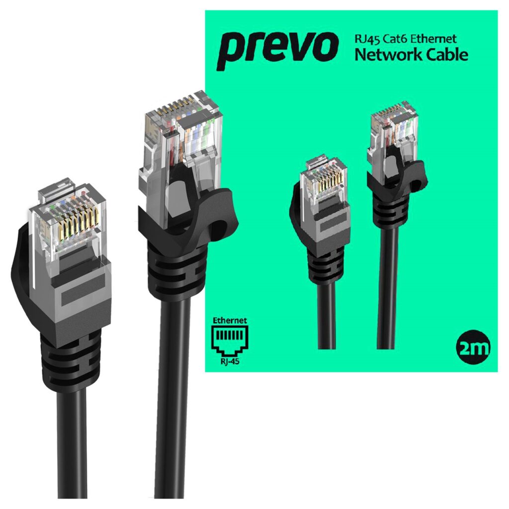Prevo CAT6-BLK-2M Network Cable, RJ45 (M) to RJ45 (M), CAT6, 2m, Black, Oxygen Free Copper Core, Sturdy PVC Outer Sleeve & Clip Protector, Retail Box Packaging