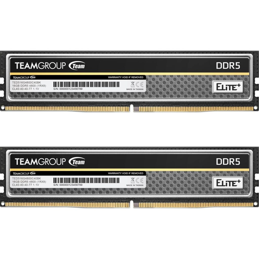 Team Elite Plus TPBD532G4800HC40DC01 32GB DIMM System Memory, DDR5, 4800MHz, 2 x 16GB, 288 Pin, 1.1v, CL40-40-40-77